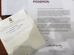La imagen que antecede a estas líneas tiene, para mí, el valor de un símbolo. Se trata de la respuesta del senador de Podemos Ramón Espinar a la invitación recibida por el Real Madrid para acudir al palco del Real Madrid...